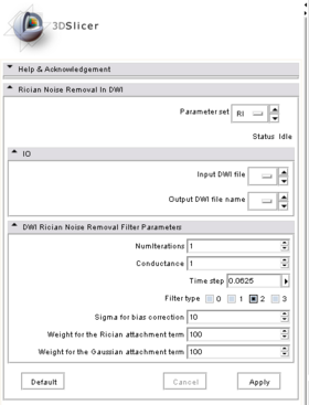 | − | + | | [[Image:RicianNoiseRemoval_screenshot.png|left|thumb|280px|Rician noise removal module in Slicer3]] | |