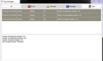 | + | |[[Image: Slicer4ErrorLog.jpg|thumb|400px| Error log in Slicer 4]] | ||