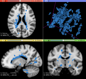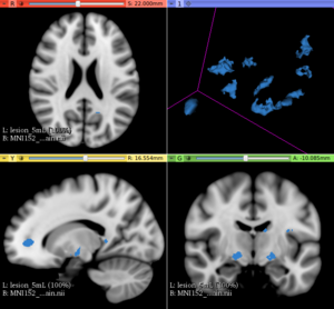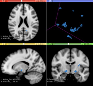 This extension offers a set of tools for brain lesion simulation, based on MRI images. At the moment, the module MS Lesion Simulator is available, where it can simulate both baseline scan lesion volumes (given a lesion load) and longitudinal image simulations. In summary, a statistical lesion database is generated based on a set of manual lesion mark-ups, being non-linearly registered to MNI152 space (isotropic 1mm of voxel resolution), and a local contrast ratio is applied on each imaging modality provided by the user. Using a small set of parameters (lesion load, lesion homogeneity, lesion intensity independence and lesion variability), it is possible to generate a broad range of MS lesions patterns in multimodal MRI imaging techniques (at moment, T1, T2, T2-FLAIR, PD, DTI-FA and DTI-ADC images are provided). For more details about this project, please see the original paper.